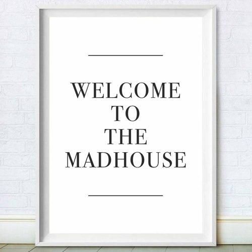 Our Welcome To The Madhouse Print is one of our range of Hallway Prints . Each wall picture print has been designed in house and is printed to order. Our small team take a great deal of care to ensure all print orders are despatched promptly and arrive with our customers in pristine condition.
