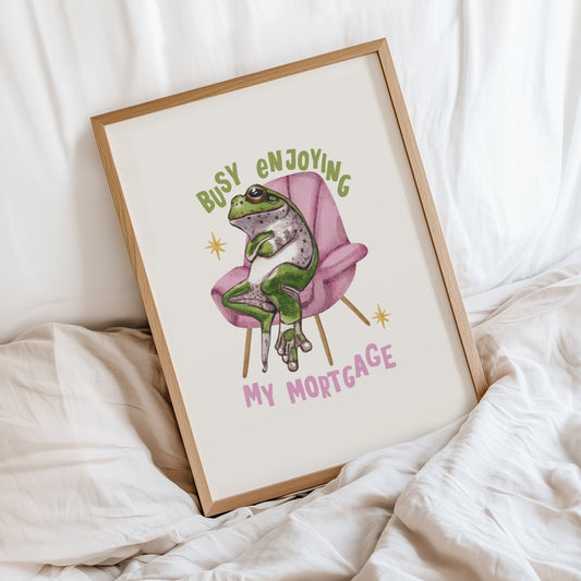• Busy Enjoying my Mortgage Frog Print
